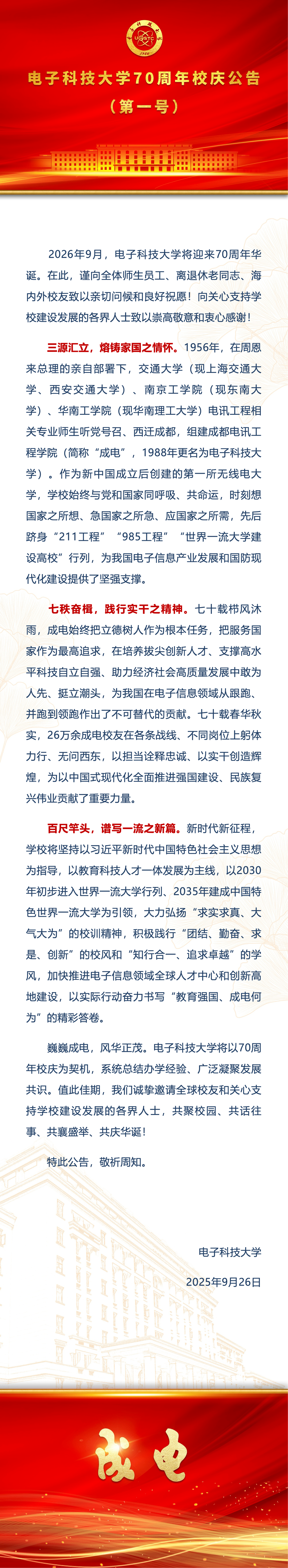 下一条:电子科大建校69周年,首届校友文化节精彩抢先看!
