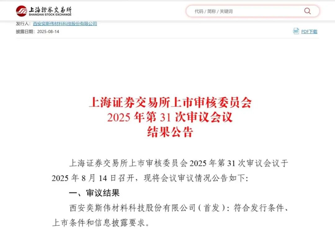 8月14日,上交所上市审核委员会2025年第31次审议会议召开,审议西安奕斯伟材料科技股份有限公司科创板IPO申请,获通过。