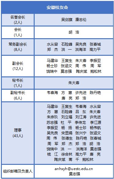 安徽校友会是服务于在安徽及周边地区工作、生活的广大校友的温暖家园。自成立以来,先后举行了走访了校友企业——安徽云翼航空六安基地等系列活动。欢迎每一位在安徽工作生活的校友加入我们,共同续写母校情谊,携手共进。如需咨询或获取最新活动资讯,敬请通过联络邮箱与我们联系。