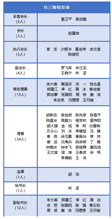 电子科技大学长三角校友会是响应国家长三角经济一体化战略号召,由电子科技大学校友总会于2019年倡议发起成立的区域性校友组织。校友会旨在促进上海、江苏、浙江、安徽三省一市校友会的跨地区交流,整合区域校友力量,搭建多形式合作平台,并作为长三角区域代表,与各地区校友会保持并行关系,负责协调各方合作,协助校友企业对接政府、企业及高校资源。在组织架构上,长三角校友会设理事会、监事会和秘书处,下设集成电路等行业分会,并筹建校友基金,形成了覆盖长三角地区的组织网络。其主要职能涵盖搭建联络平台、推动产业合作与产学研转化、组织学术交流及行业论坛,以及为校友创业项目提供投资咨询与资源支持。自成立以来,校友会成功举办多届年会及创新创业论坛,积极推动如电子科技大学长三角研究院(衢州)等校地合作项目落地,并于2025年成立集成电路行业分会以聚焦专业领域整合。作为连接母校与长三角地区校友的桥梁,电子科技大学长三角校友会始终致力于服务校友发展、助力区域经济,传承“求实求真、大气大为”的成电精神,为国家科技创新和经济发展贡献力量。